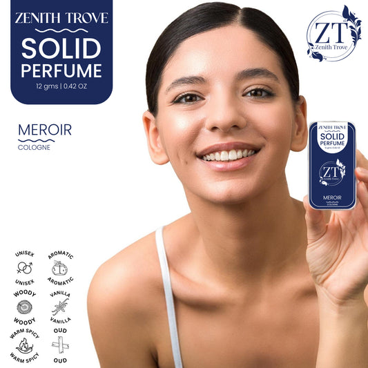 Scent Meroir Item part number ZTMR-SP09 Skin Type All Age Range (Description) Adult Product Benefits Zenith Trove Meroir Solid Perfume Wax for Men & Women | 12g Long Lasting Alcohol-Free Cologne | Natural Unisex Fragrance | Travel Friendly Pocket Perfume | Fresh Floral Spicy Scent for Daily Use Special Feature Natural Ingredients, Long Lasting, Moisturizing, Not Tested On Animals, Travel Size Friendly Active Ingredients Bees Wax, Shea Butter, Fragrance, Jojoba Oil & Paraffin Wax. Net Quantity 1 Sale -