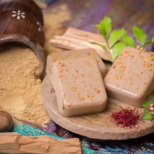 Magic Soap with saffron, sandalwood, coconut oil, and goat milk – natural de-tan soap for all skin types, enriched with Ayurvedic ingredients for radiant and glowing skin.De-tan removal Magic Soap