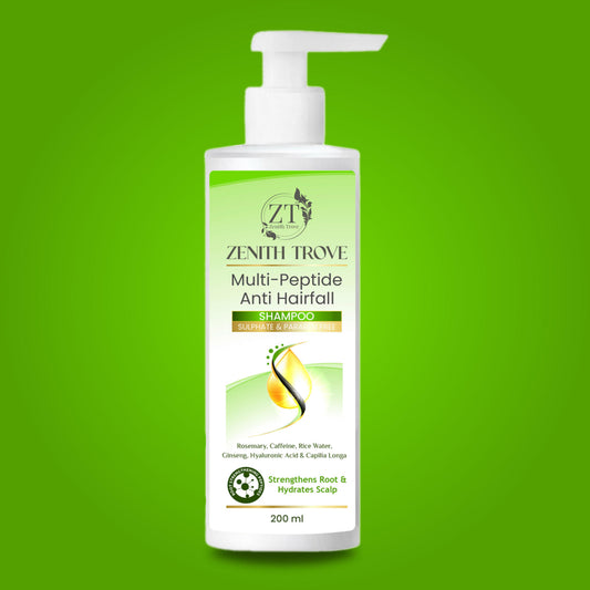 Vendor:Zenith TroveRegular price From Rs. 399.00Regular priceUnit price / perRs. 799.00Sale price From Rs. 399.00ZENITH TROVE Multi-Peptide Anti Hairfall Shampoo – Strengthening & Nourishing Formula for Hair Growth and Scalp Health