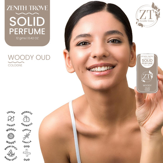 Discover the luxurious Zenith Trove Woody Oud Solid Perfume, a sophisticated 12g cologne that brings the mystique of traditional oud into a modern, travel-friendly format. This alcohol-free solid perfume balances deep, woody notes with exotic spices, creating an intriguing unisex fragrance suitable for daily wear. The convenient solid wax formulation makes it perfect for on-the-go touch-ups, fitting easily into pockets or bags without the worry of spills. The long-lasting fragrance evolves beautifully throughout the day, revealing complex layers of earthy oud complemented by subtle floral undertones. The elegant metal tin packaging ensures safe storage while maintaining the integrity of the fragrance. Whether you're heading to work or stepping out for an evening engagement, this versatile scent makes a lasting impression without overwhelming the senses.