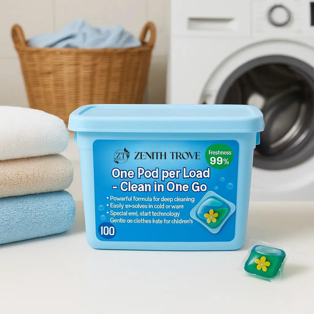 Make laundry simple, effective, and eco-friendly with Zenith Trove Laundry Detergent Pods. This 100-count mix pack of washing capsules is specially designed to deliver powerful stain removal, color protection, and fabric care in every wash. Made with a plant-based, non-bio formula, these pods are gentle on skin, safe for baby clothes, and perfect for the entire family. Each capsule dissolves completely in hot or cold water, leaving no residue behind—just fresh, clean, and lightly scented laundry. Unlike liquid or powder detergents, these pre-measured pods are convenient, mess-free, and reduce waste, making them the smart choice for everyday washing. With no harsh chemicals and a hypoallergenic formula, Zenith Trove Pods are tough on stains yet kind to your clothes, your skin, and the planet.