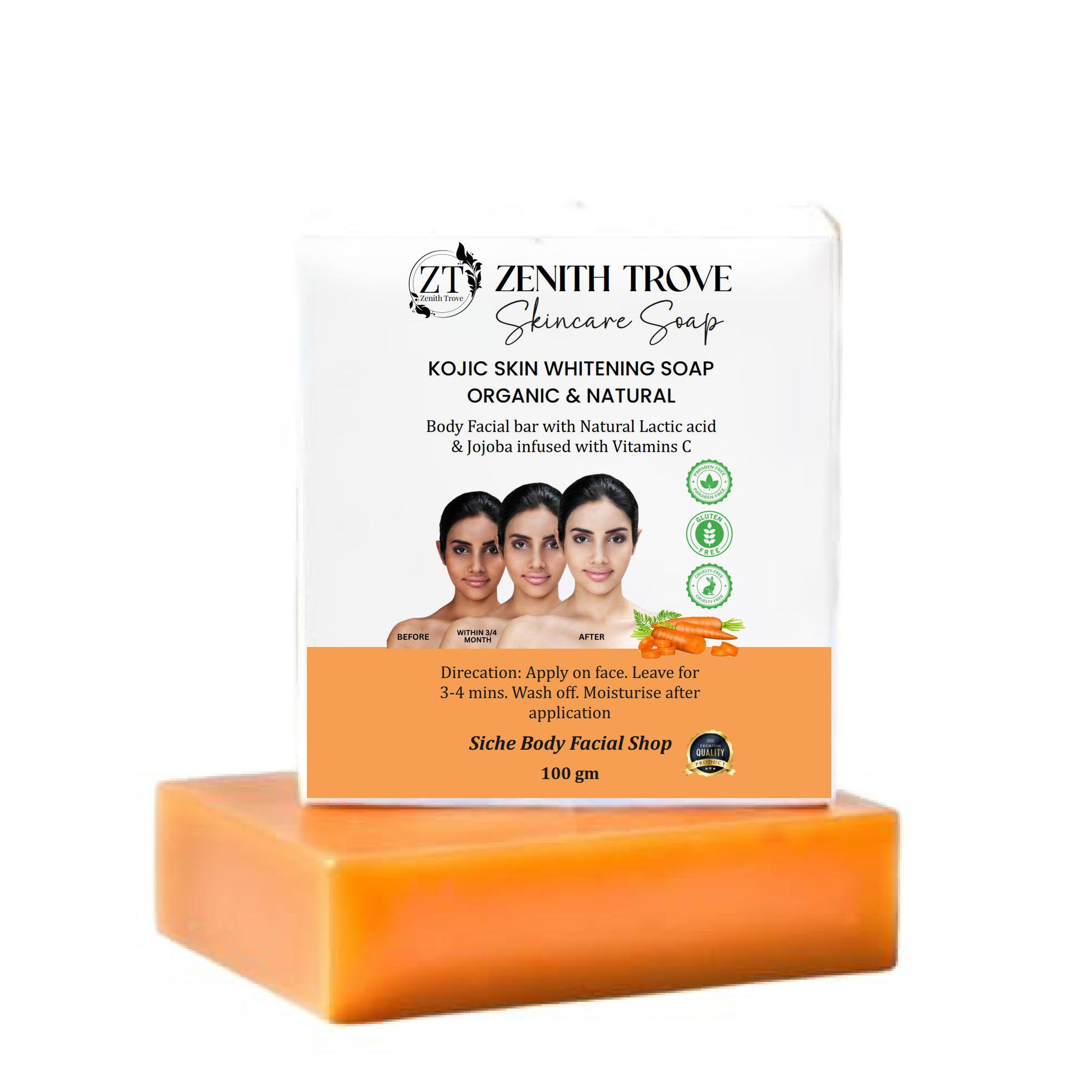 Zenith Trove Kojic Skin Whitening Soap | Organic & Natural with Lactic Acid, Jojoba & Vitamin C | Brightening Face & Body Bar for Dark Spots & Pigmentation – 100g (100 g (Pack of 1))