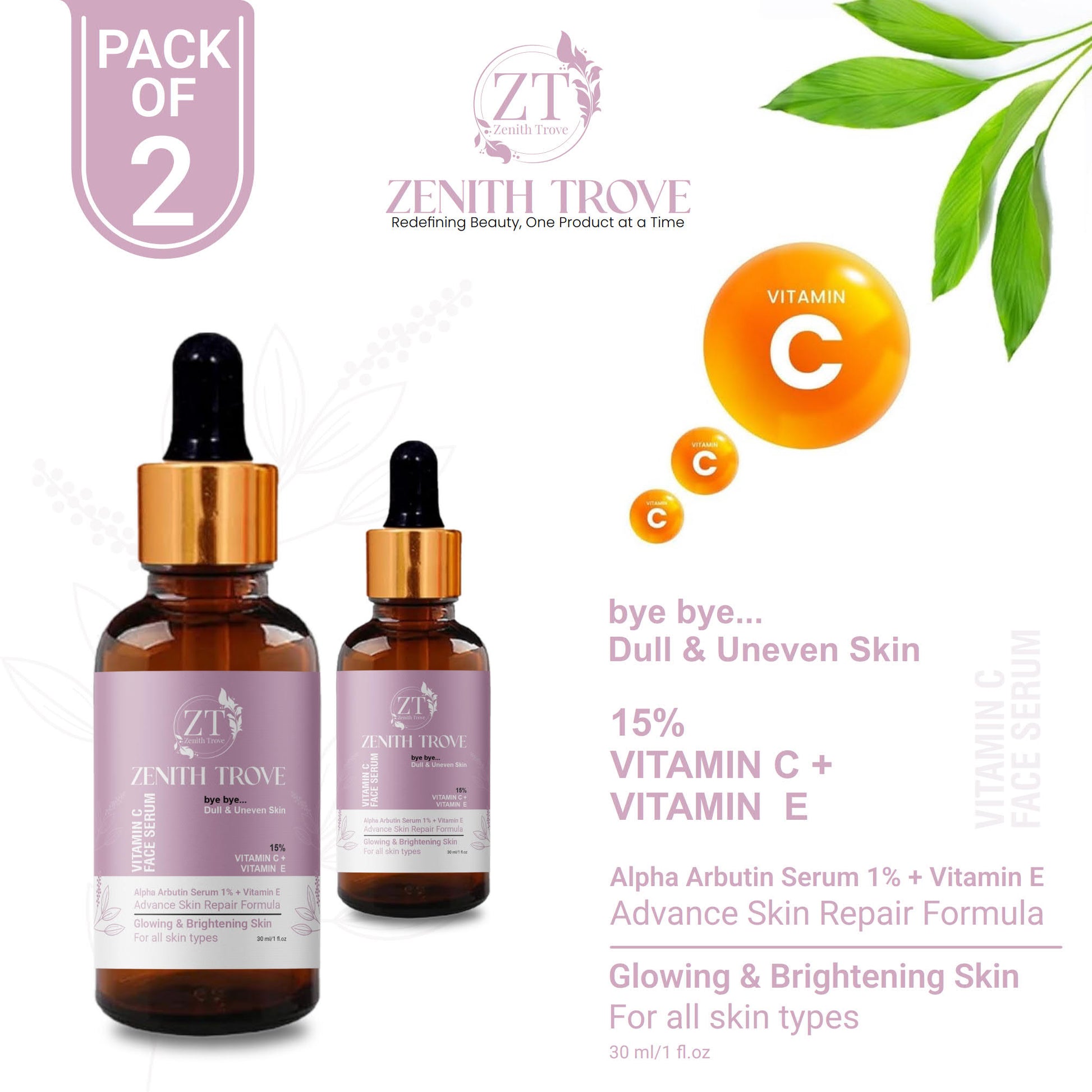 Zenith Trove Vitamin C Face Serum | Reduces Dark Spots & Hyperpigmentation | Hydrating & Brightening | With Alpha Arbutin, Ferulic Acid & Vitamin E | For All Skin Types | 30ml