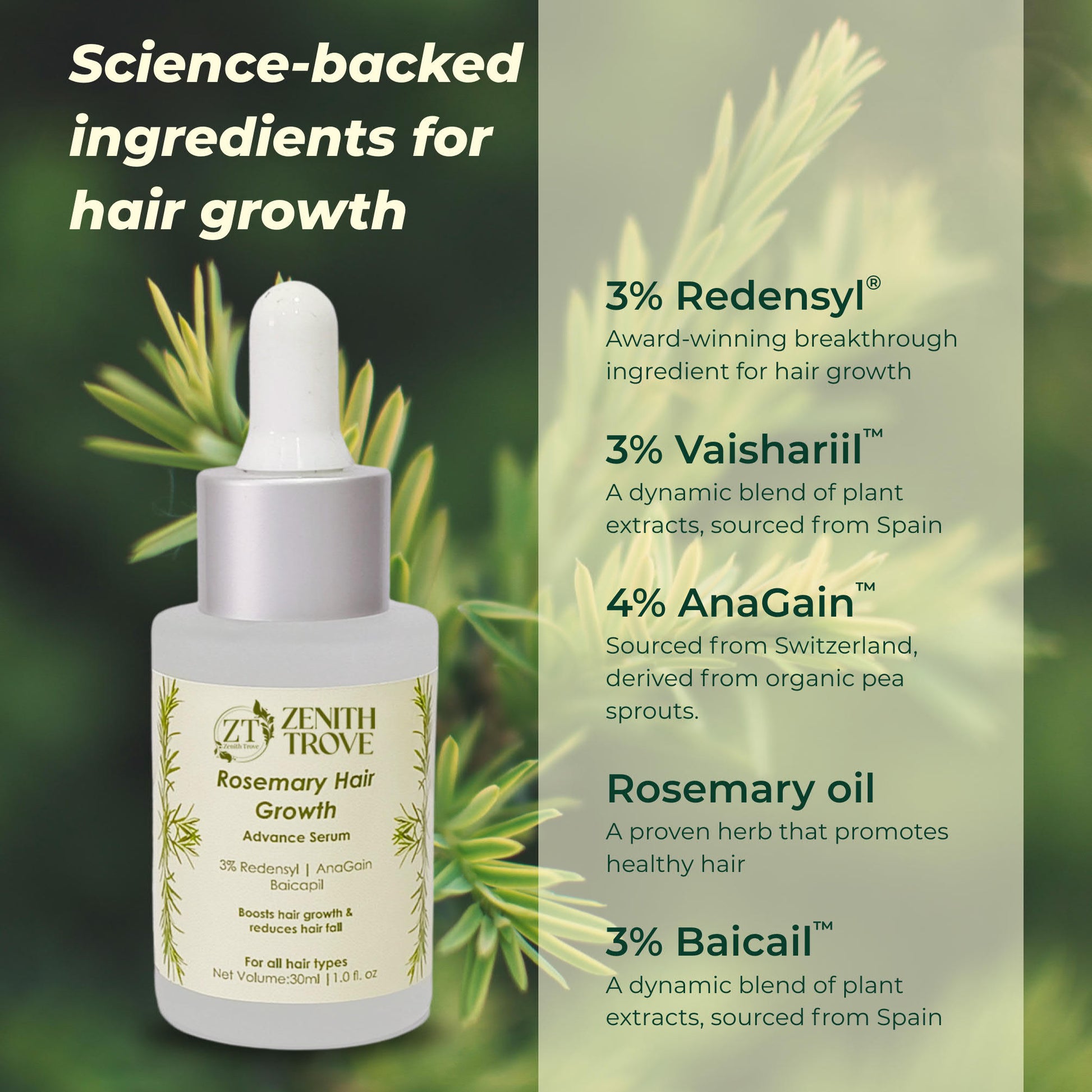 Zenith Trove Rosemary Hair Growth Serum with 3% Redensyl, 4% AnaGain, 3% Baicapil, 30 ml | Stimulates Hair Growth, Increases Hair Density & Thickens Hair | For Men & Women